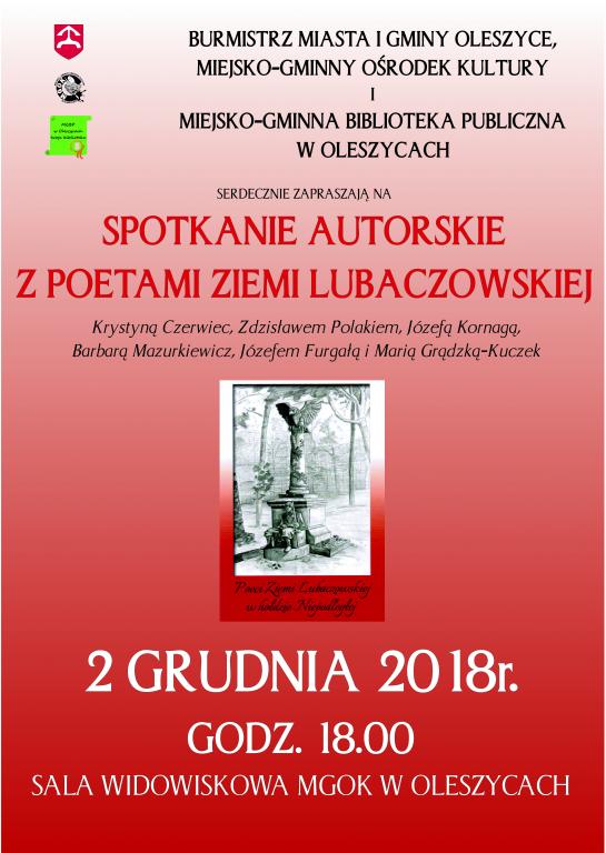 Zapraszamy na spotkanie z autorami wierszy 2 grudnia 2018r w sali widowiskowej MGOK w Oleszycach.