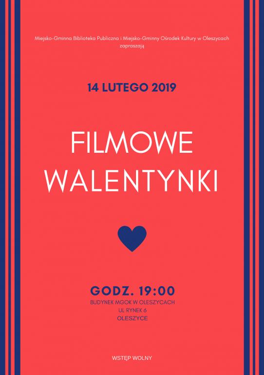 Filmowe Walentynki odbędą się 14 lutego 2019r. w MGOK w Oleszycach o godz.19:00.