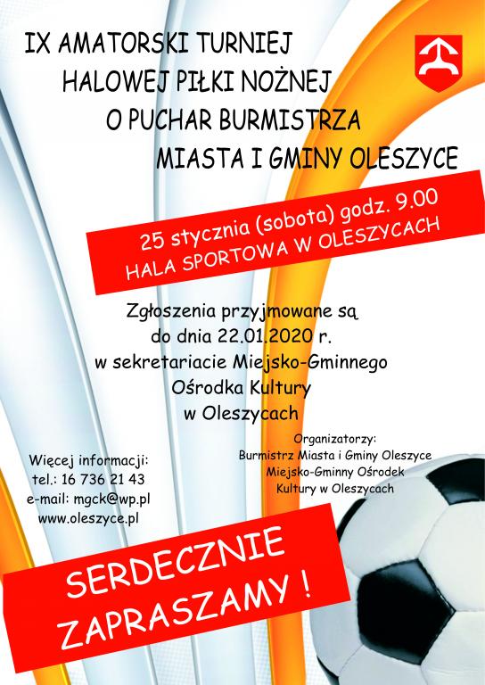 25.01.2020 r.(sobota), godz. 9.00, hala sportowa w Oleszycach.
