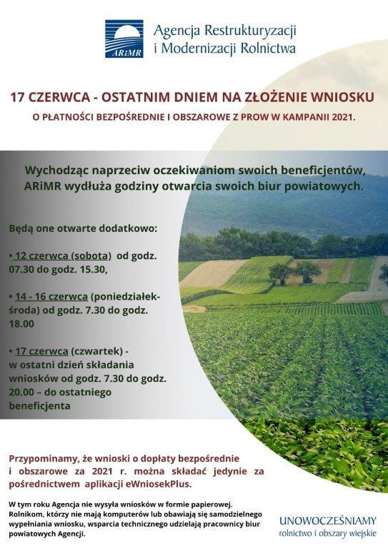 Wychodząc naprzeciw oczekiwaniom swoich beneficjentów, ARiMR wydłuża godziny otwarcia swoich biur powiatowych.