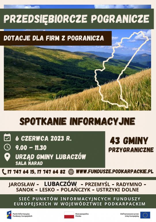 Spotkanie organizowane jest w ramach cyklu bezpłatnych spotkań informacyjnych w ramach akcji „Przedsiębiorcze Pogranicze - dotacje dla firm z pogranicza”. Harmonogram pozostałych spotkań dostępny jest pod adresem: https://tiny.pl/chkpx
