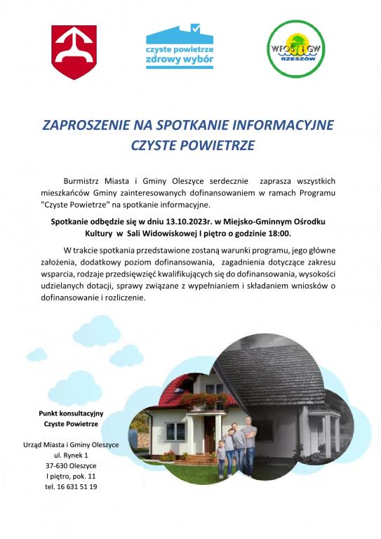ZAPROSZENIE NA SPOTKANIE INFORMACYJNE CZYSTE POWIETRZE