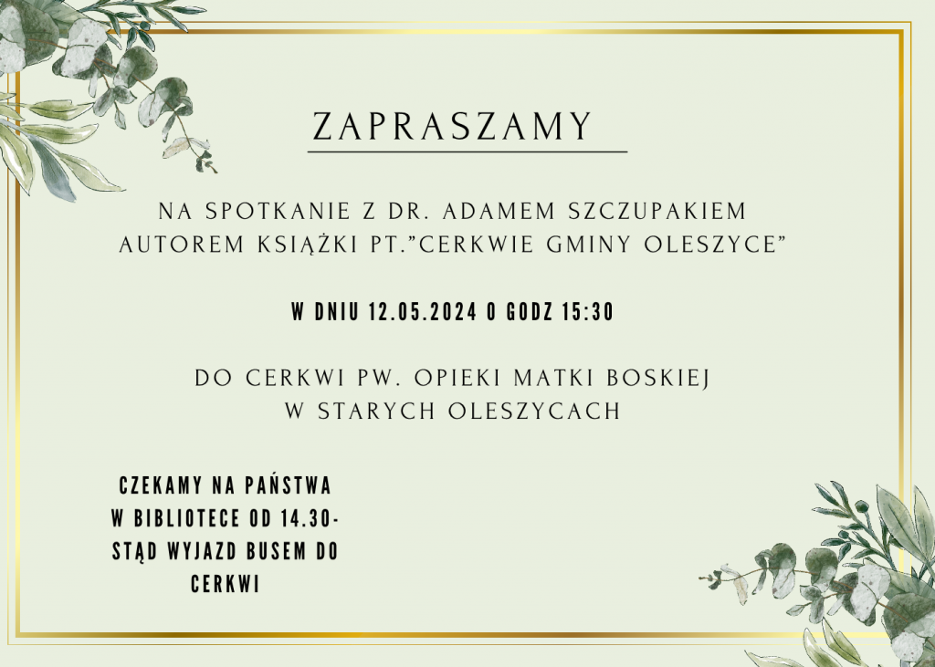 Spotkanie z Adamem Szczupakiem autorem książki pt. "Cerkwie Gminy Oleszyce"