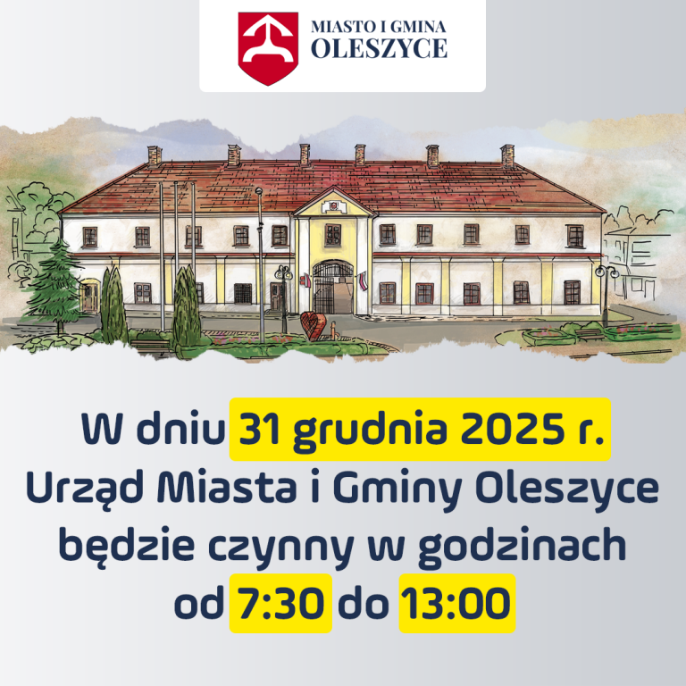 Godziny pracy Urzędu Miasta i Gminy Oleszyce w dniu 31 grudnia 2025 r.