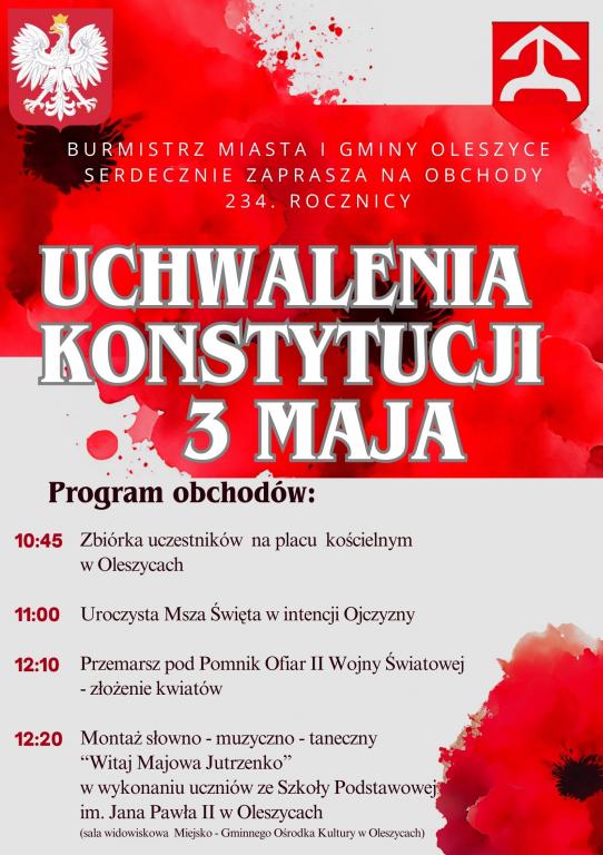 Dalsza część uroczystości odbędzie się w Miejsko-Gminnym Ośrodku Kultury w Oleszycach.