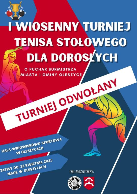 W związku ze śmiercią Papieża Franciszka oraz ogłoszeniem przez Prezydenta RP żałoby narodowej, I Wiosenny Turniej w tenisa stołowego, zaplanowany na sobotę 26 kwietnia, zostaje odwołany.