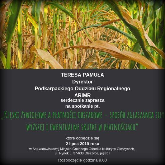 Rady Ministrów z dnia 27 stycznia 2015 r. w sprawie szczegółowego zakresu i sposobów realizacji niektórych zadań Agencji Restrukturyzacji i Modernizacji Rolnictwa (Dz. U. poz. 187, z późn. zm.) informuje, iż od dnia 3.10.2019 r. do dnia 31.10.2019 r. producenci rolni, w których gospodarstwach rolnych szkody w uprawach rolnych spowodowane wystąpieniem w 2019 r. suszy, huraganu, gradu, deszczu nawalnego, przymrozków wiosennych lub powodzi, w rozumieniu przepisów o ubezpieczeniach upraw rolnych i zwierząt gospodarskich, powstałe na powierzchni uprawy objęły co najmniej 30% danej uprawy, mogą składać wnioski o udzielenie pomocy w formie dotacji.