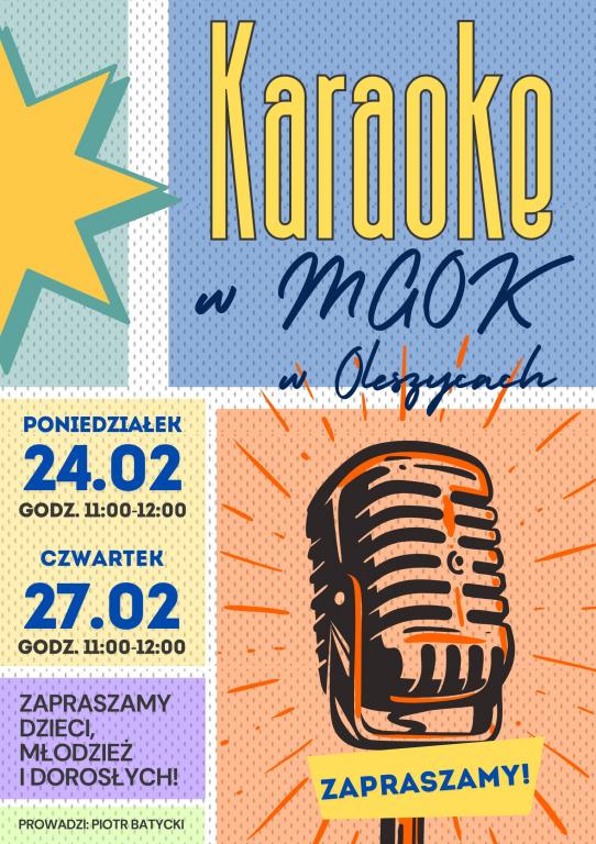 Obrazek Serdecznie zapraszamy na zajęcia muzyczne w drugim tygodniu ferii zimowych. Muzyczne karaoke i gitara dla początkujących w Miejsko-Gminnym Ośrodku Kultury w Oleszycach.