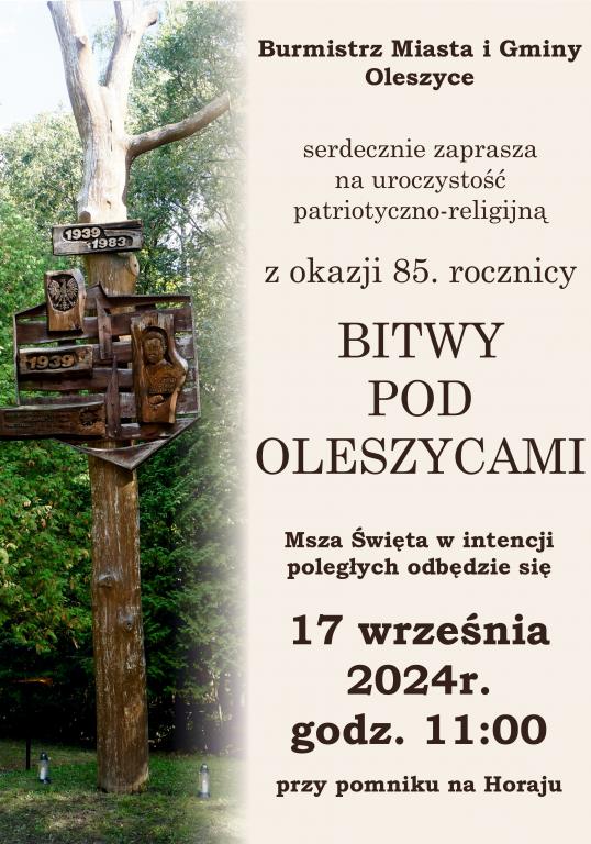 Chcąc upamiętnić to wydarzenie i uczcić pamięć tych, którzy polegli w walce o wolność, tradycyjnie na uroczysku Horaj odbyła się Msza Święta polowa z udziałem 1 Brygady Strzelców Podhalańskich, pocztów sztandarowych, samorządowców, zaproszonych gości, uczniów i mieszkańców gminy Oleszyce. Eucharystii przewodniczył ks. Tomasz Rybiński, a homilię wygłosił ks. Radosław Zaborniak. O jej uroczystą oprawę zadbała młodzież ze Szkoły Podstawowej im. Jana Pawła II w Oleszycach pod kierownictwem s. Bernadetty Basamon i Moniki Jezuit. więcej