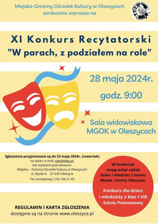 w sali widowiskowej MGOK w Oleszycach. W konkursie mogą wziąć udział dzieci i młodzież ze szkół podstawowych z terenu Miasta i Gminy Oleszyce.