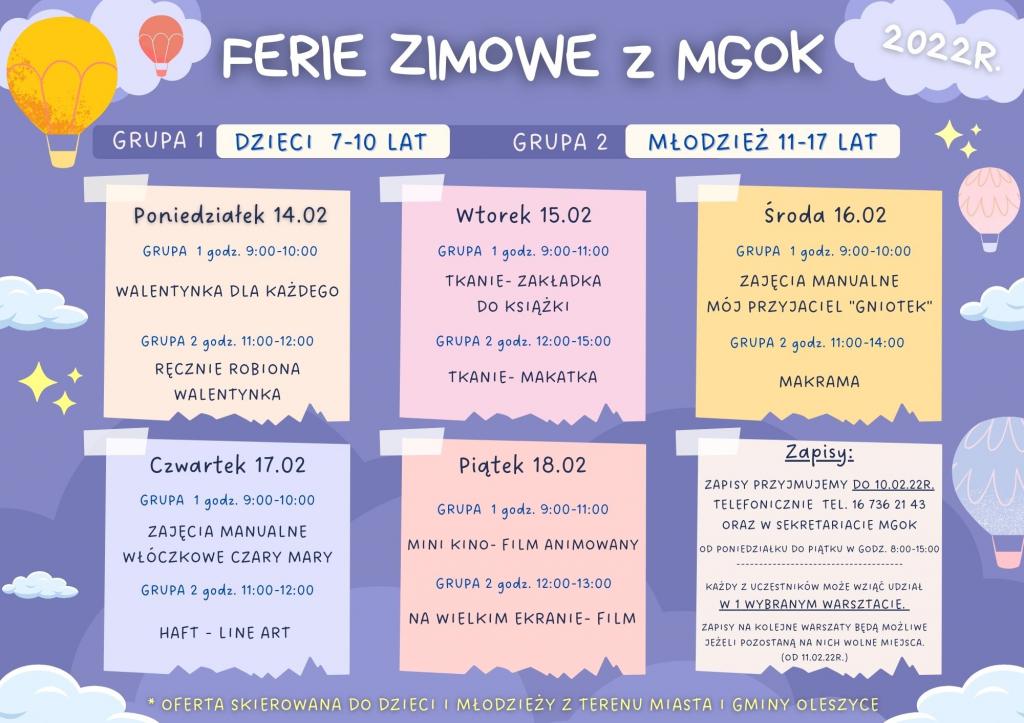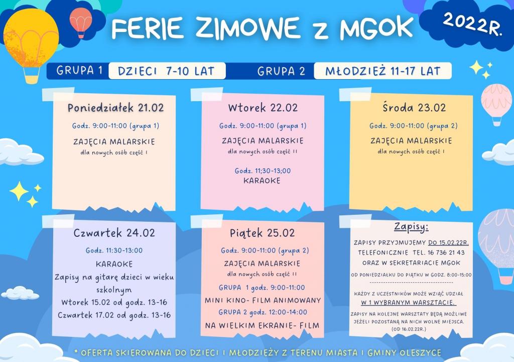Serdecznie zapraszamy dzieci i młodzież z terenu miasta i gminy Oleszyce na zajęcia malarskie i muzyczne podczas drugiego tygodnia ferii zimowych.