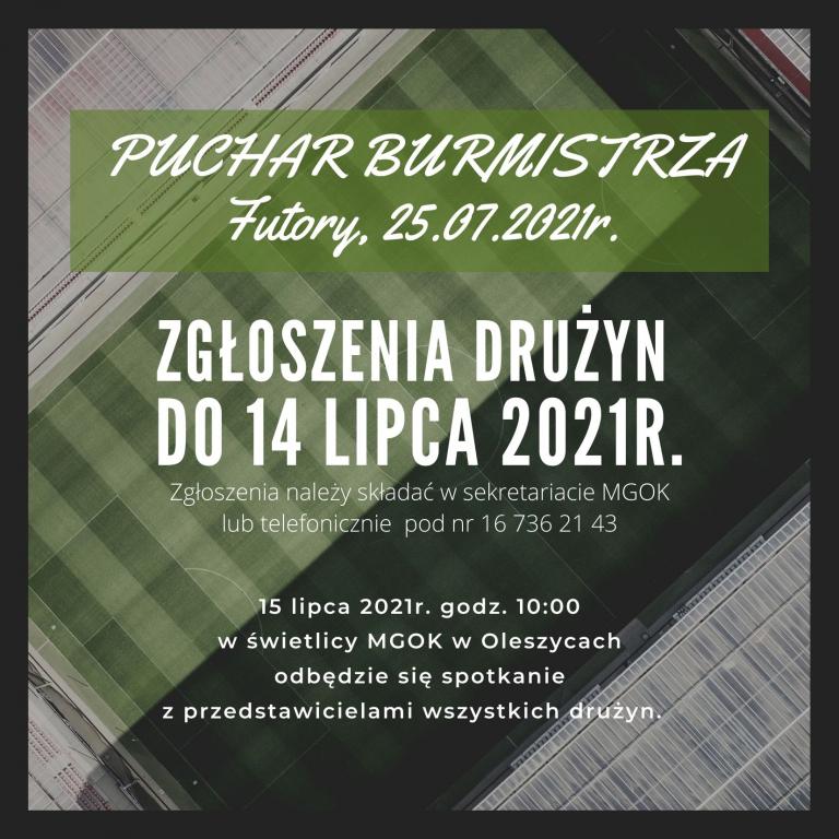 Obrazek Serdecznie zapraszamy do zgłaszania drużyn na Turniej Piłki Nożnej o Puchar Burmistrza Miasta i Gminy Oleszyce. Szczegóły na plakacie.