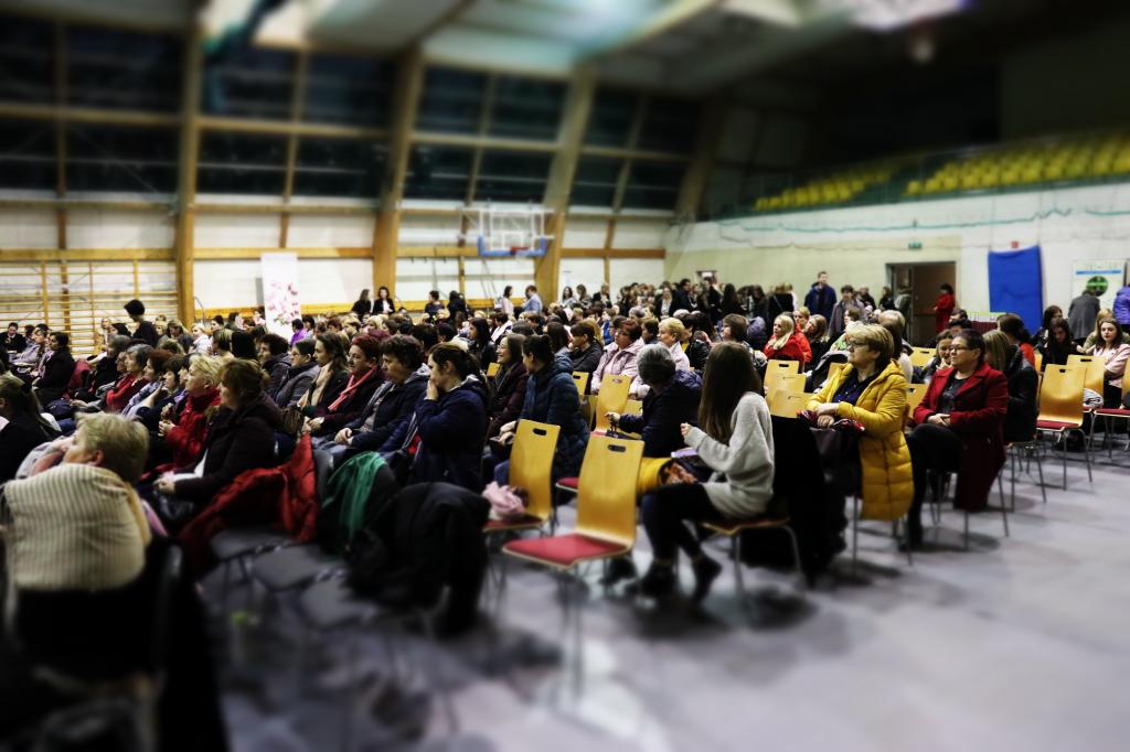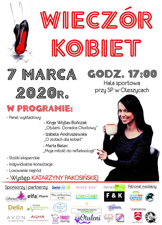 Kolejny już, siódmy Wieczór Kobiet za nami. Tak jak w ubiegłym roku spotkanie odbyło się w hali widowiskowo-sportowej przy Szkole Podstawowej w Oleszycach. Licznie zgromadzone panie, podczas panelu wykładowego miały okazję wysłuchać trzech ciekawych wykładów. Jako pierwsza na scenie pojawiła się Pani Kinga Wojtas-Bończak- doradca chustowy, która opowiedziała o tym jak nosić dzieci w chustach i jakie korzyści płyną z chustonoszenia zarówno dla rodziców jak i dla dzieci. Kolejną ekspertką, która podzieliła się swoją wiedzą ze zgromadzonymi w tym dniu kobietami była Pani Izabela Andruszewska- właścicielka sklepu zielarsko-medycznego Kocimiętka, która opowiedziała o ziołach dla kobiet, o tym jakie dary natury mogą nam pomóc w łagodzeniu różnych dolegliwości zdrowotnych. Trzeci wykład dotyczył refleksologii. Pani Marta Bielec w krótkim wystąpieniu opowiedziała o tym jak refleksologia pomogła jej wyleczyć różne dolegliwości zdrowotne i o tym jak teraz sama pomaga innym za jej pomocą.