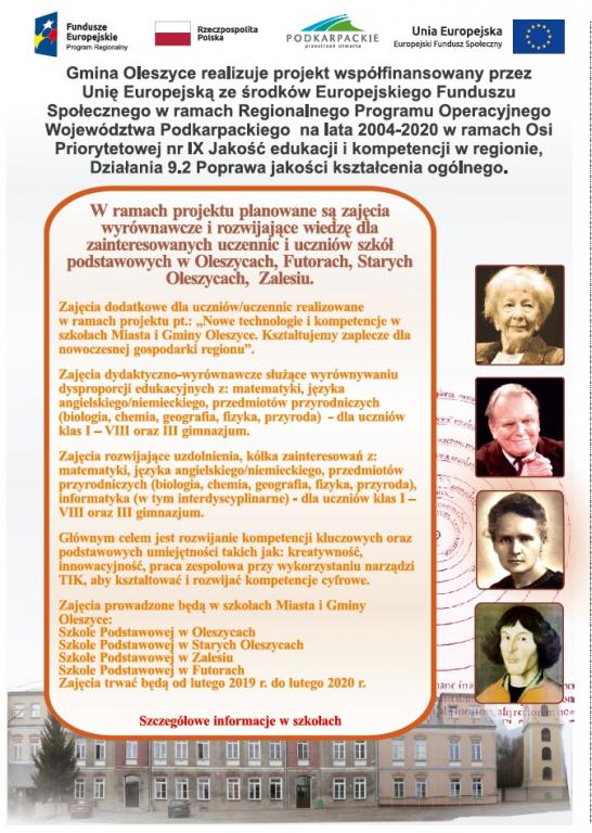 Gmina Oleszyce informuje, że w ramach projektu współfinansowanego przez Unię Europejską pn.: „Przebudowa sieci wodociągowej na terenie Miasta i Gminy Oleszyce” nr ...