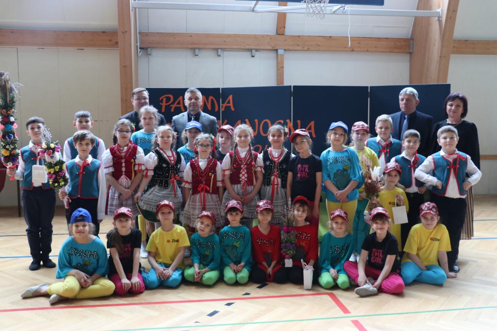 W związku z czym z pewnością wielu cieszy fakt, że w naszej Małej Ojczyźnie, każdego roku odbywa się konkurs na najładniejszą palmę wielkanocną. Ma on na celu pogłębić więzi z regionem, kultywować znaczenie tradycji, utrwalić wiedzę na temat symboliki i ważności palm w obrzędowości ludowej oraz pobudzić aktywność twórczą. Uczestnikami konkursu mogą być dzieci, młodzież szkół podstawowych i przedszkola z terenu naszej gminy. W tym roku na konkursie palmy wielkanocnej spotykaliśmy się już 16. raz. Podsumowanie konkursu miało miejsce w hali widowiskowo-sportowej Szkoły Podstawowej im. Jana Pawła II w Oleszycach, 19 marca br. i przybrało uroczysty charakter, zwłaszcza, że uświetnione zostało obecnością i wystąpieniem pana Andrzeja Gryniewicza Burmistrza Miasta i Gminy Oleszyce. Podczas spotkania głos zabrała pani Agata Adamska dyrektor szkoły, która witając wszystkich podziękowała za przybycie oraz udział w konkursie, jednocześnie przedstawiając jego wyniki. Przedstawiciele samorządu uczniowskiego przedstawili krótką informację o sposobie pielęgnowania tej tradycji w różnych regionach naszego kraju. Były również wiersze, piosenki oraz piękne tańce w wykonaniu naszych uczennic i uczniów.