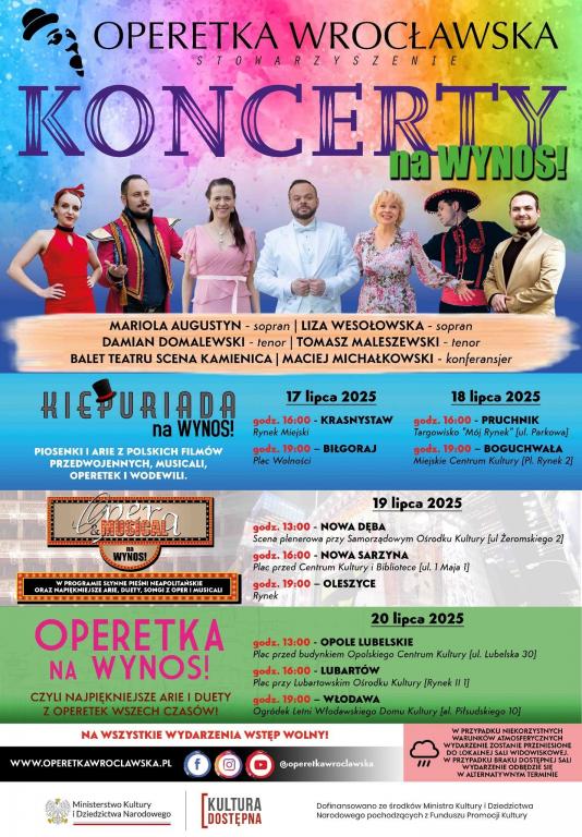 Koncert odbędzie się 19 lipca 2025 r.(sobota) o godz. 19:00 na dziedzińcu Ratusza w Oleszycach.