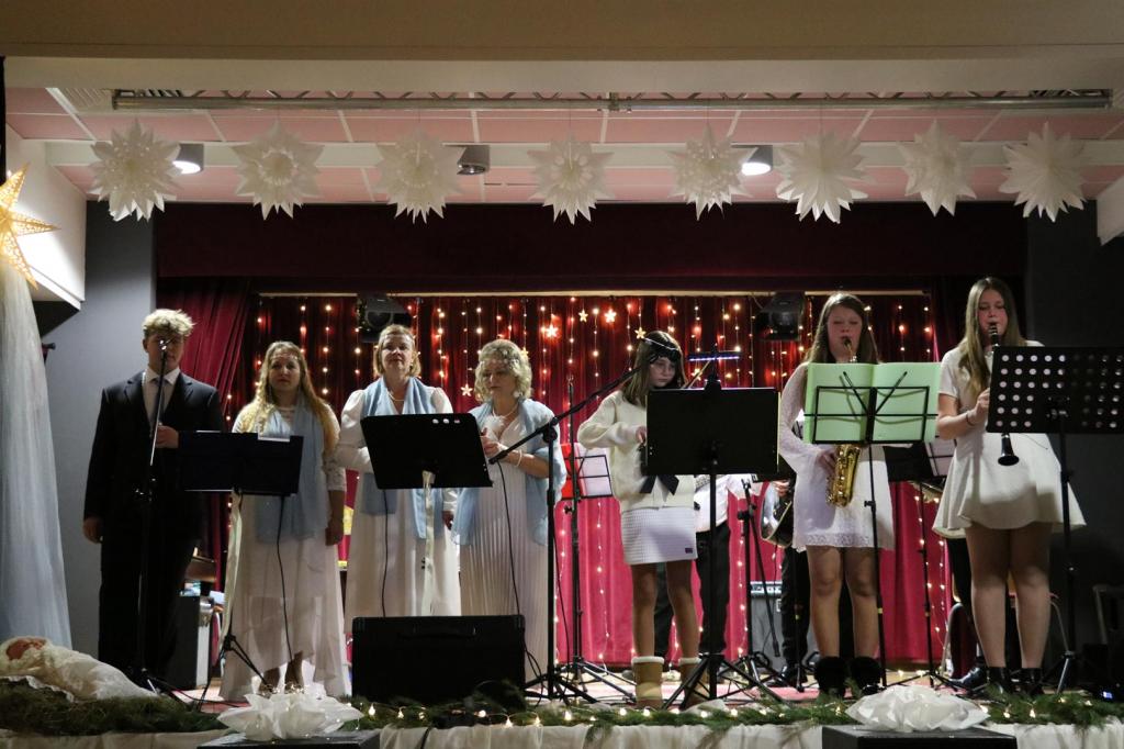 Po serdecznym powitaniu wszystkich zebranych należało już tylko wznieść zawołanie „Hej kolędo, w niebo leć!” Gdy aniołowie wesele opowiadają i wszemu światu znak dają, że narodził się nam Zbawiciel, to światłość dotarła do wszystkich także za sprawą gwiazdy betlejemskiej, o czym w pastorałkach „Anieli w niebie śpiewają” i „W drodze do stajenki”. Piękne nutki „ Pastorałki od serca do ucha” niosły się z udziałem połączonych dziecięcych grup wokalnych z SP Oleszyce, które śpiewając wspólnie z Zespołem Cztery Pory Roku prezentowały równocześnie figury taneczne- to wykonanie było jedną z pierwszych dedykacji dla Babć i Dziadków z okazji Ich Święta. Spójrz Dzieciątko na świat wielki, ile smutku, ile łez, niech twa miłość zdejmie lęki z naszych oczu, z naszych serc, a nadzieja znów wstąpi w nas- przesłanie w „Kolędzie dla nieobecnych”. Gwiazda wciąż wskazuje drogę, by iść tam, gdzie leży mała Dziecina siankiem otulona i woła: biegnijcie „Pastuszkowie, bracia mili” z muzyką i zagrajcie krzesanego na Jego cześć! Jak mówi wszystkim dawne, odwieczne orędzie, z pierwszą na niebie gwiazdą Bóg w naszym domu zasiądzie, tak więc „Raduj się, śpiewaj pieśń, oto Król narodził się, Jemu cześć”- to w pięknej pastorałce „Gwiazdy tańczyły”. Dziecię w stajni utrudzone na sianeczku śpi, a gdy zimno- płacze, jak listeczek drży, bo na świecie „Zawieja i beznadzieja”, a gdzie „Złota Jerozolima”? Zapytam Jezusa maleńkiego, jak miłości mamy uczyć się przez łzy i przygarnąć Go do serca swojego, gdy On na gołym sianku śpi, nie w złotej kolebeczce, nie na miękkiej poduszeczce, a stajenka licha, „Mizerna, cicha”… Dalej niejednokrotnie zadajemy pytanie „Gdzież berło, gdzie Twoje korony Jezu malusieńki?”- w kolędzie „Przystąpmy do szopy”. Ale gdyby się Jezus „Pod Giewontem zrodził” to takie słowa „Bedom tobie góry i hole śpiewały, bedzies w biołyk portkach i cuzecce chodził Jezusicku słodki”mówią wiele. „O szczęśliwi pastuszkowie, któż radość waszą wypowie” gdy biegliście „powitać Maleńkiego i Maryję Matkę Jego”, więc i my „Pójdźmy wszyscy do stajenki”, do Jezusa i Panienki… Stajenka już coraz bliżej , z dala płynie ciepły ton kołysanki dla Jezusa, słychać wdzięczny Marii głos, chór aniołów włączył się „Lulajże Jezuniu, lulaj”. Nasze aniołki też ochoczo włączyły się do tej kołysanki piórkami wachlując leżącą na sianku dziecinę. „Józefie stajenki nie szukaj” i do gospody nie pukaj, przynieś ze sobą Dziecinę, jest miejsce w naszej rodzinie- taką deklarację złożyliśmy nie tylko w tej pięknej pastorałce. Jezu, Ty przyszedłeś zbawić naród cały, lecz czy masz dosyć siły, jesteś taki mały? Ach, podnieś rękę Boże Dziecię, błogosław Ojczyznę miłą! Tą kolędę- hymn zaśpiewaliśmy razem z publicznością, która na stojąco oddała uwielbienie, chwałę, cześć z wiarą, iż każde kolejne Boże Narodzenie ma sens. Z muzyką i pieśniami, głosami dziecięcych grup wokalnych i - z ich szczerych, małych serduszek popłynęły dedykacje z okazji Dnia Babci i Dziadka wraz z kolędami „Bosy pastuszek”, „A wczora, z wieczora”- wyśpiewane przez Kropelki, Perełki, Dzieci Oleszyc. Jak wiele radości i wspaniałych, niezapomnianych wrażeń wciąż dostarcza taniec mogliśmy się przekonać, kiedy grupy taneczne z SP Oleszyce dały ich pokaz do melodii i piosenek świątecznych. Pierwszego zauroczenia doznaliśmy, gdy Perełki wykonały żartobliwy, pełen ekspresji układ do piosenki „Jingle bells”, a ich barwne, mikołajkowe stroje pięknie się w całość wkomponowały. Połączone dziecięce grupy dały równie bogaty w osobliwą choreografię pokaz taneczny do kolędy „Gore gwiazda”. We wszystkich tych prezentacjach dzieci przebrane w stroje aniołków, gwiazdek, gwiazdorów wprowadzały w podziw i wzruszenie. Młodzieżowa grupa taneczna Czerwone Korale wystąpiła w pełnym uniesienia i liryzmu tańcu do pastorałki „Mario, czy Ty wiesz”, a piękna, śnieżna biel ich strojów podkreślały wspaniały przekaz. Zachwyt i aprobatę dla wszystkich grup tanecznych publiczność wyrażała serdecznymi brawami. Słowa uznania kierujemy do Pani Moniki Jezuit, która z wielkim oddaniem, poświęceniem i profesjonalizmem wszystkie grupy dziecięce przygotowała. Tu należy dodać, że wspaniałe pokazy dziecięcych grup tanecznych i wokalnych zostały przygotowane z myślą o Babciach i Dziadkach, by sprawić im jak największą radość z okazji Święta. Również na Ich cześć Milena, przedstawicielka wszystkich dzieci wyrecytowała przejmujące, z łezką w oku „Pachnące łąką życzenia”. Dla wspaniałej, licznie przybyłej publiczności, za jej pełne, serdeczne zaangażowanie przygotowaliśmy ciasteczka, jako nagroda i podziękowanie za obecność i wspólne kolędowanie. Dopełnieniem wszystkich wrażeń i podkreśleniem świątecznego charakteru koncertu była dekoracja z tradycyjnymi elementami takimi jak: dzieciątko na sianku, gwiazda betlejemska, szopka z wosku pszczelego, opłatek, świeca, piękne bombki ręcznie wykonane i wiele innych. Dziękujemy Dyrekcji i pracownikom MGOK Oleszyce za pomoc i umożliwienie realizacji koncertu. Serdeczne podziękowanie za gościnny występ i wsparcie instrumentalne w wielu kolędach kierujemy do: Marysi Witko- saksofon altowy, Ani Witko- klarnet, Amelki Misztal- skrzypce. Zespół Wokalno- Instrumentalny Cztery Pory Roku wystąpił w składzie: wokal-Alicja Franus, Małgorzata Kościelińska, Monika Olejnik, Kacper Olejnik, Paweł Młodowiec także akordeon i aranżacja utworów, Konrad Młodowiec- gitara akustyczna, Roman Morawski- gitara basowa, Wojciech Kułakowski- instrumenty perkusyjne.