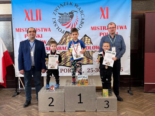 3. Jan Kuszaj (junior do lat 6) - najmłodszy zawodnik Mistrzostw, który dzielnie zdobywał punkty oraz cenne doświadczenie na tak dużych zawodach. Najlepiej zaprezentował się w grze błyskawicznej, gdzie zdobył 7 punktów. Wspierał swojego starszego kolegę i koleżanki w zawodach drużynowych do lat 8. Mimo, że najmłodszy to ani razu nie był ostatni.